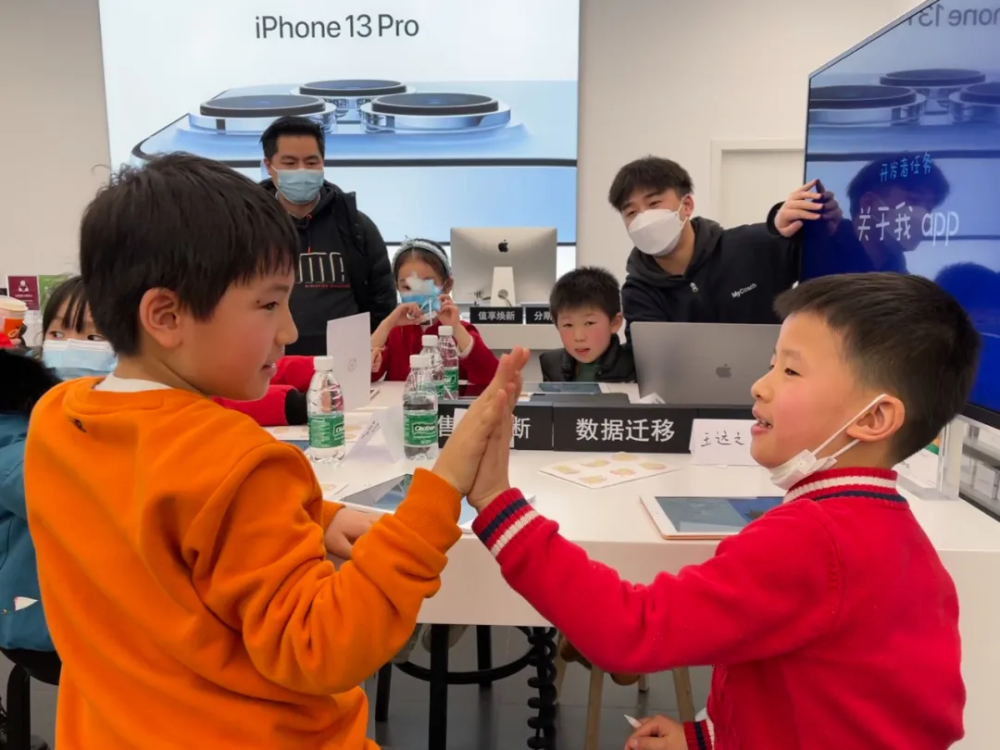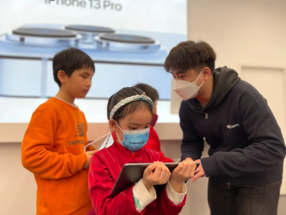 作为生态中重要一环的少儿编程,苹果每年会举行少儿编程夏令营或冬令营活动,由受过培训的店员带报名儿童体验Swift编程内容。他们先通过线下游戏的方式,让孩子们先理解代码和指令的概念,之后才进入到具体的教学中。